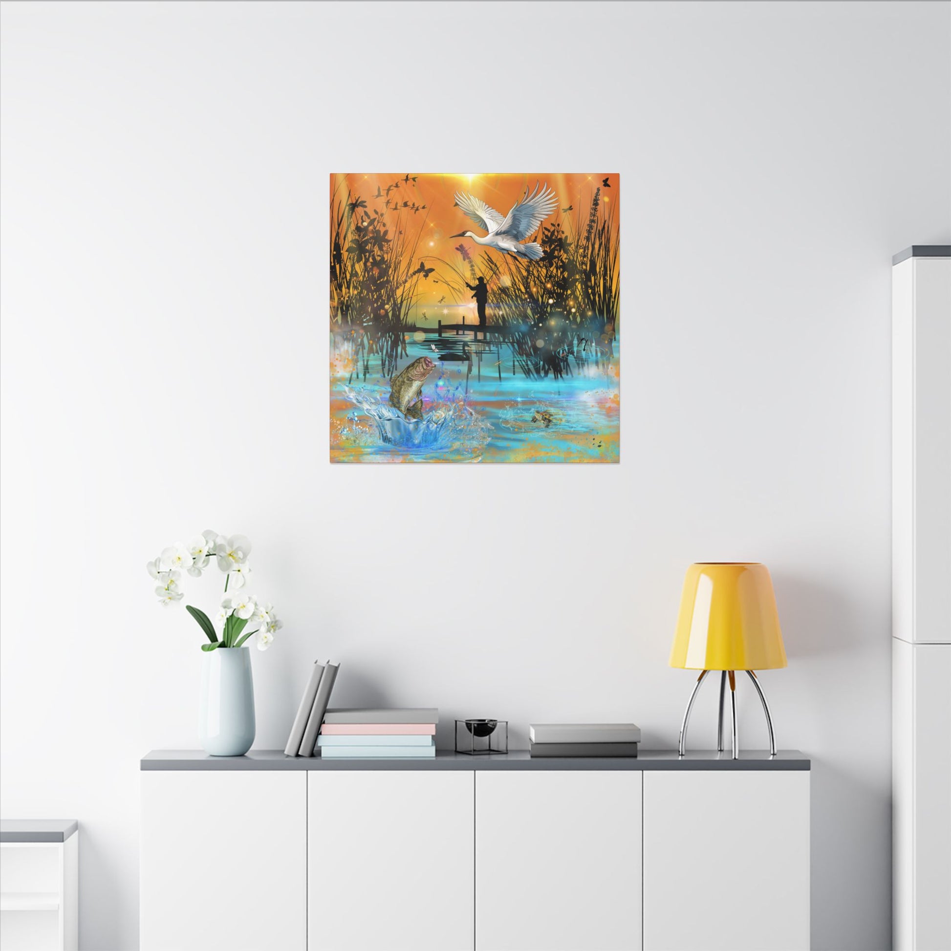 Transform your space with this stunning Stretched Canvas, perfect for adding a splash of color and warmth to any room. Featuring a lively fishing scene set against a vibrant sunset, this artwork captures the tranquility of nature, making it ideal for those who love the outdoors. The vivid colors and intricate details create a captivating focal point that invites contemplation and conversation. Whether you're an avid fisherman or simply appreciate beautiful art, this canvas will enhance your home decor, particularly in living rooms, offices, or rustic cabins. It makes a thoughtful gift for birthdays, housewarmings, or even Father's Day, bringing joy to nature enthusiasts and art lovers alike.