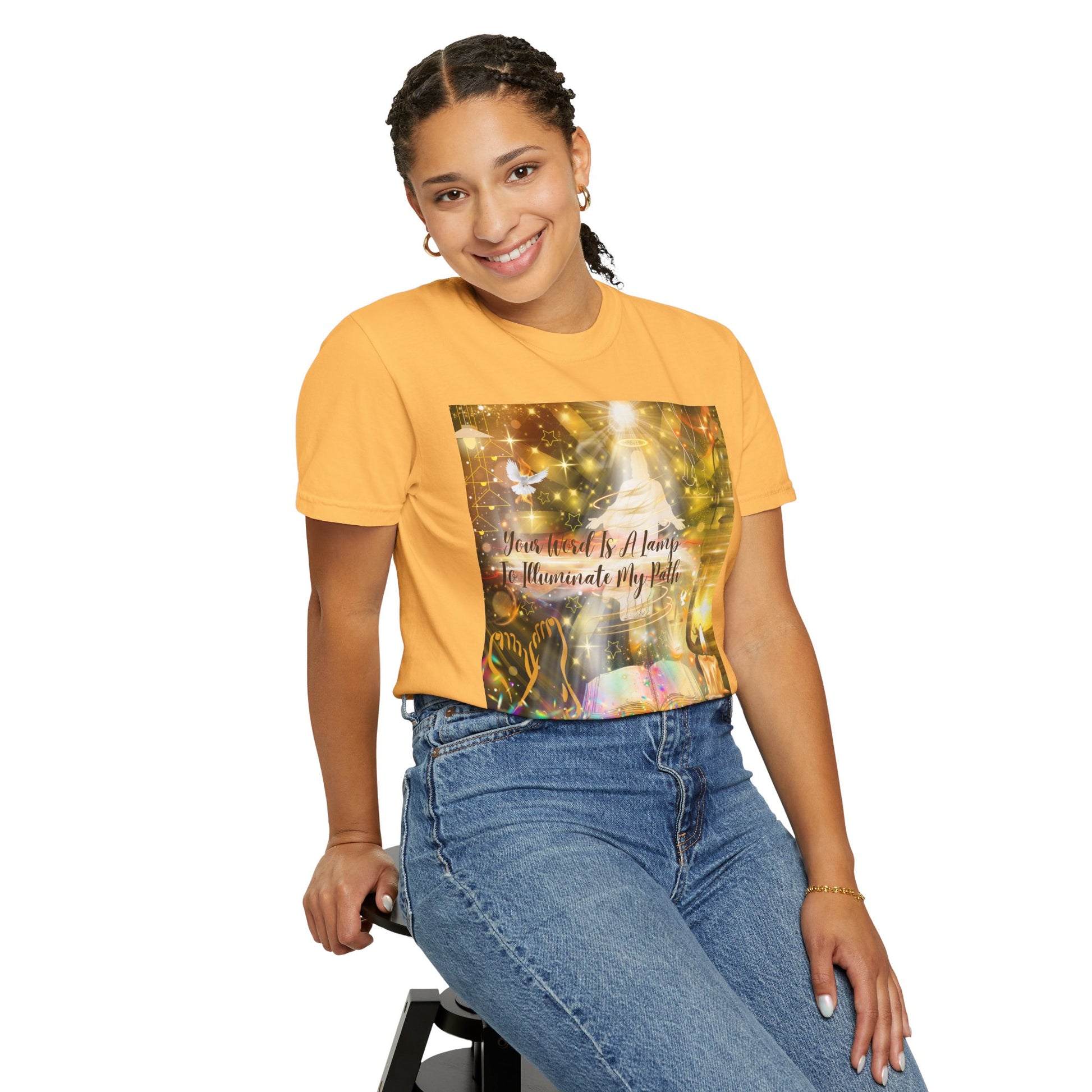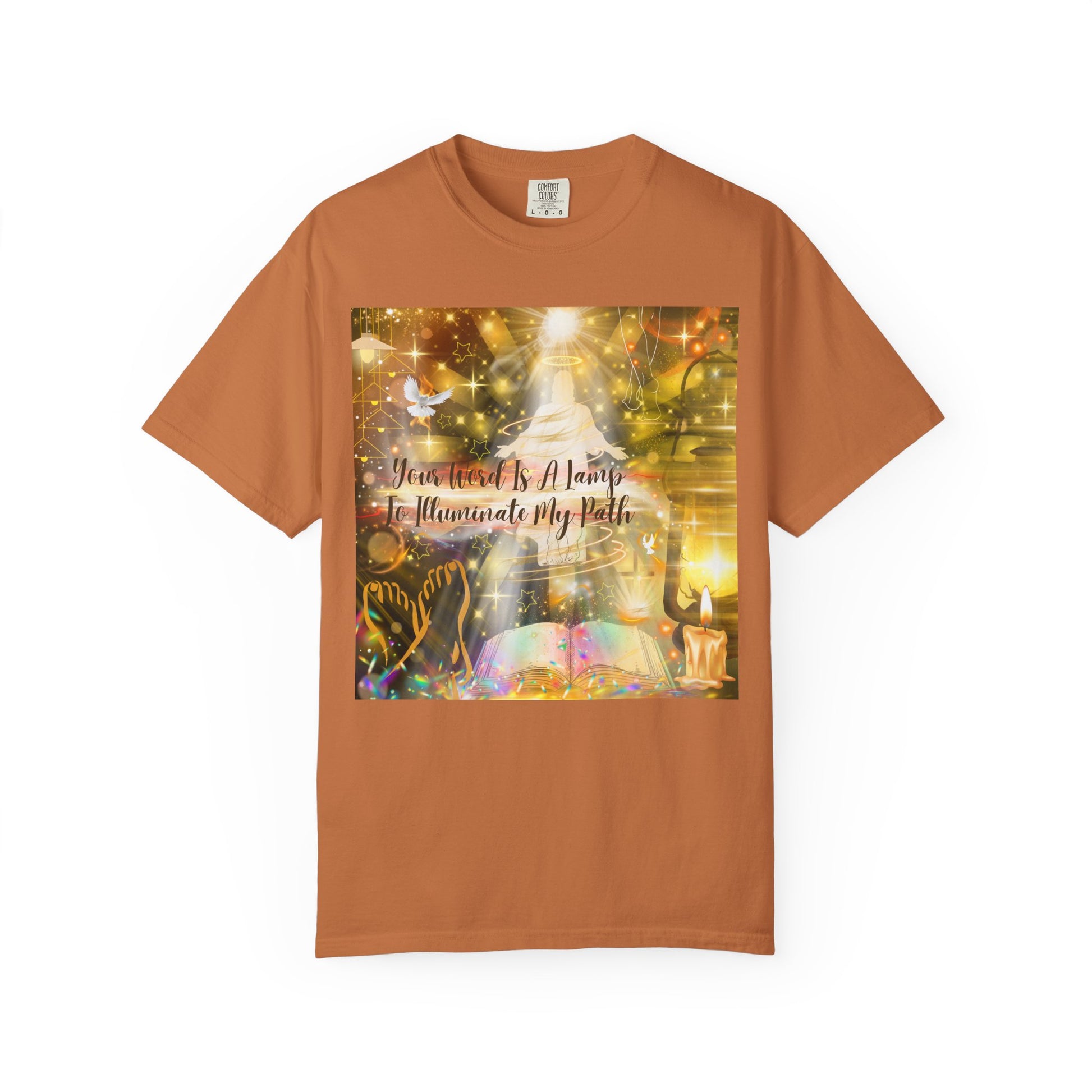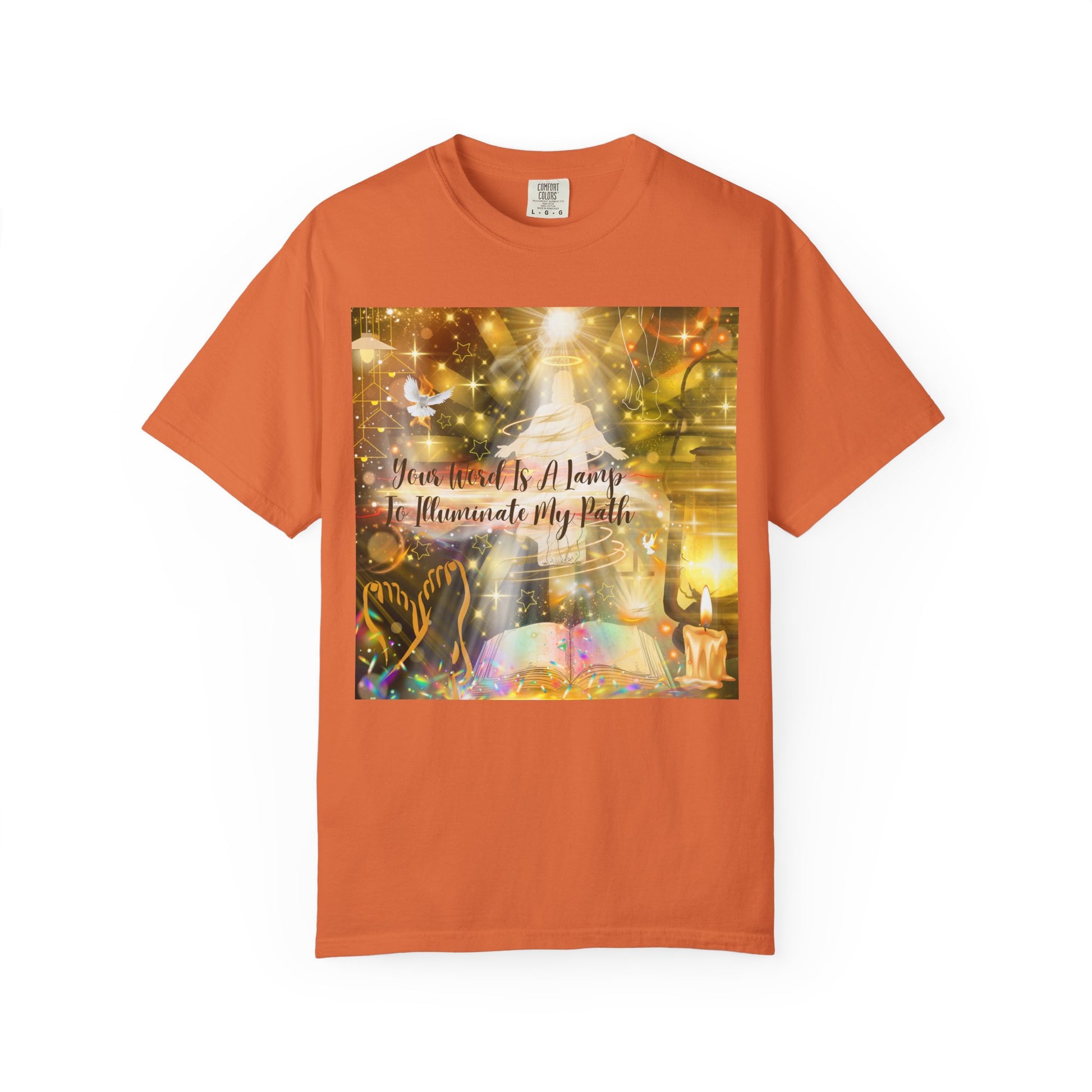 A spiritual T-shirt design featuring Jesus, Holy Spirit, and Bible quotes. This shirt gives off a peaceful and spiritual vibe, perfect for believers looking to showcase their faith. Ideal for religious holidays, church gatherings, and everyday wear for those seeking to express their devotion.